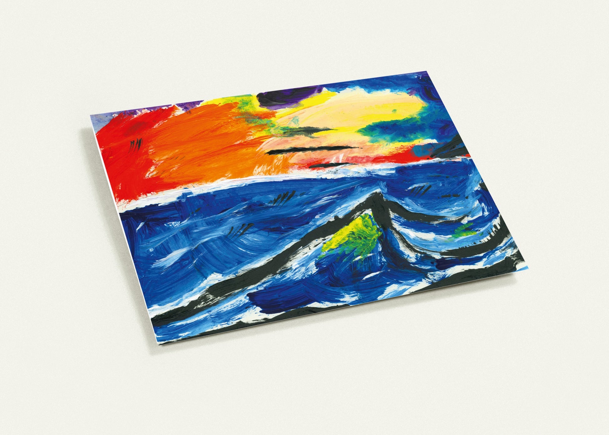 Let your imagination set sail with Sea of Dreams, a mesmerizing artwork by Avery. Bold, swirling waves dance beneath a sky ablaze with color, capturing the magic of the ocean at sunset. Whether you're sending words of encouragement, love, or just a simple hello, this card carries a sense of wonder and endless possibility.