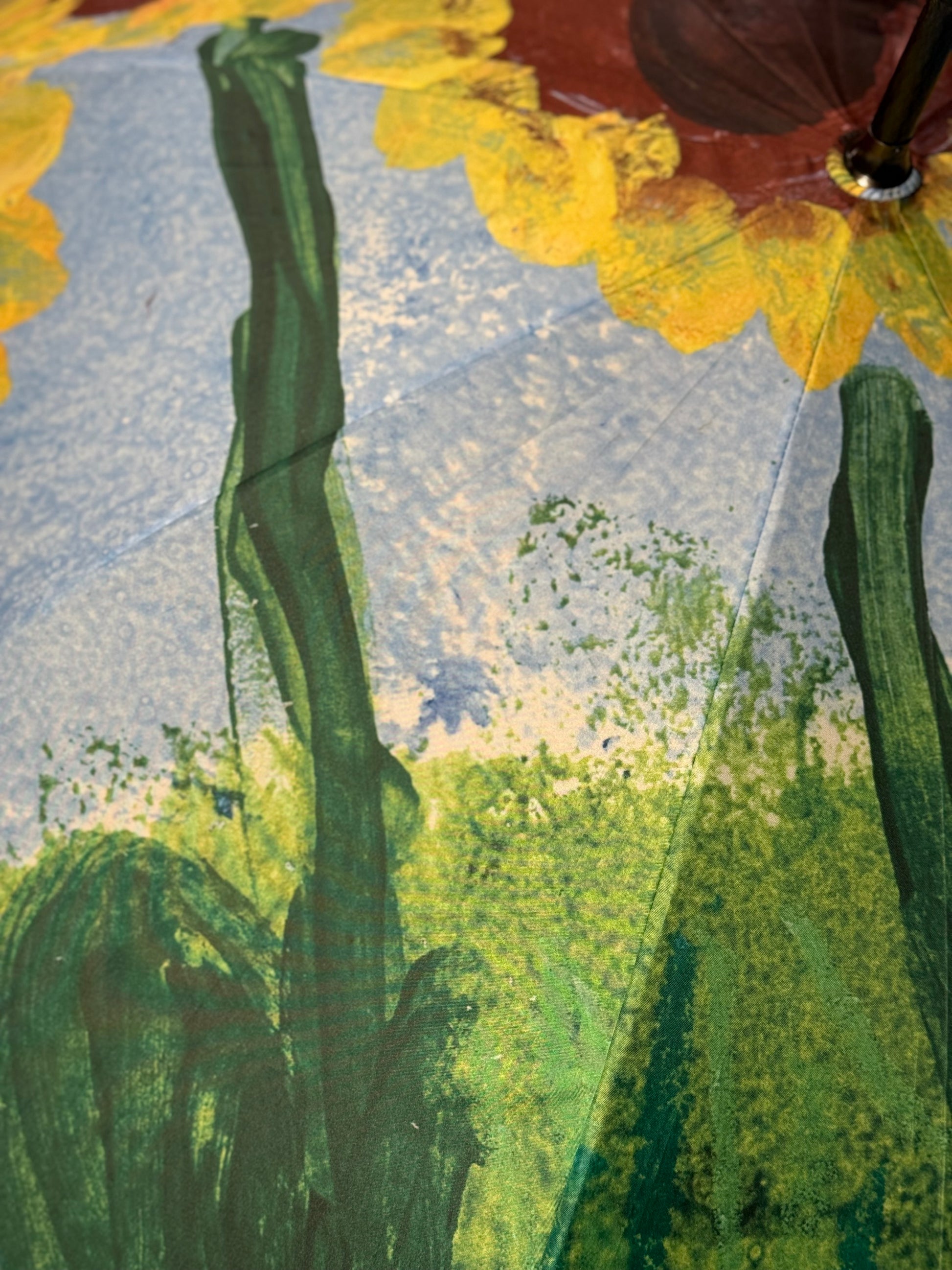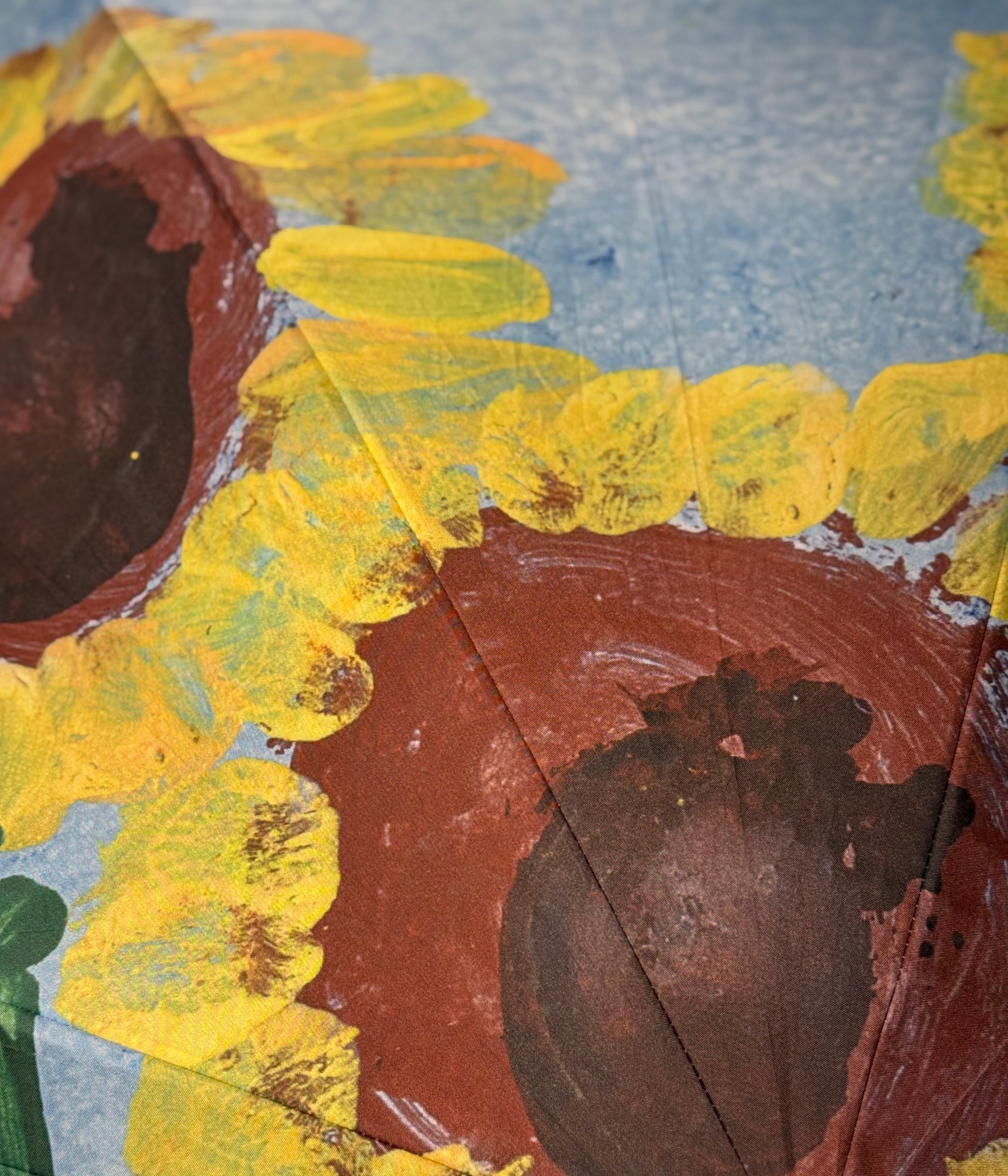 Turn every rainy day into a little burst of joy. This auto-open umbrella features Avery’s vibrant Sunflowers artwork printed across an 8-panel, waterproof canopy. The 23-inch frame gives you full, comfortable coverage, while the one-button auto-open mechanism makes it quick and easy to use—because nobody wants a wrestling match with their umbrella.
